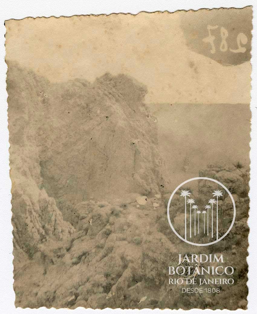 "287; 87; 287" Anotações adicionais na planilha: " Ref. Fotos impressas - Fotógrafo Roberto Delforge". Env. nº 87 . Referência: 287. Histórico: Vista da parte mais alta do rochedo. (ao longe o Cruzador Barroso) .