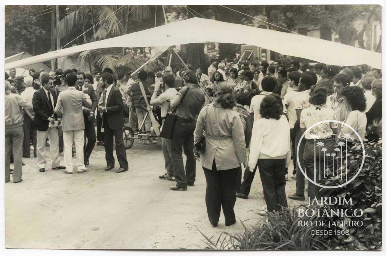 Comemoração ao Aniversário do JB. Exp.ao público e funcionários do JB das asas deltas. Se ve na foto o Presidente do IBDF Dr. Mauro Reis e o Sr. Diretor do JB Carlos Xavier. Ficha N° 133.