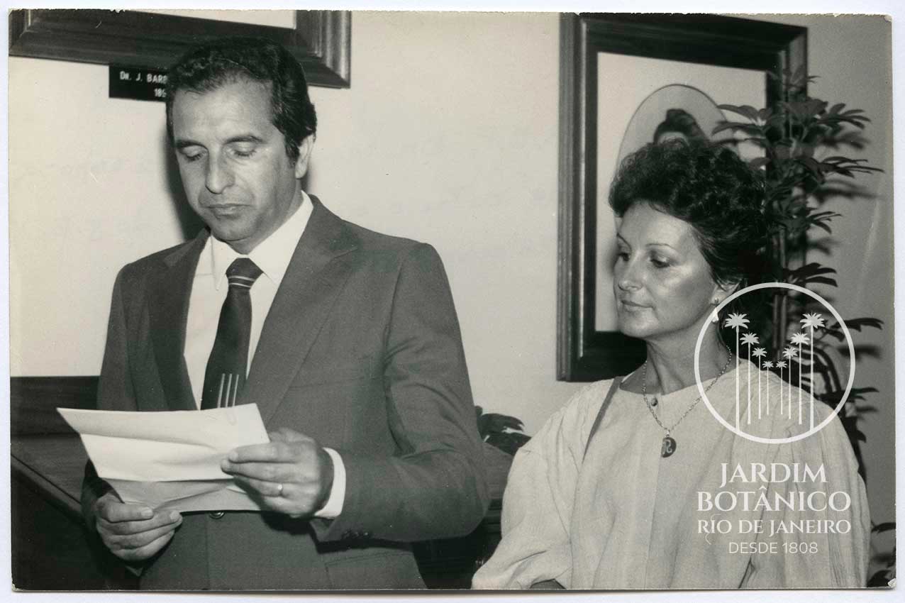 Presidente do IBDF Dr. Mauro da Silva Reis e esposa. Presidente discursando sobre aniversário do JB, que completa 175 Anos de Fundação. Ficha N° 128.