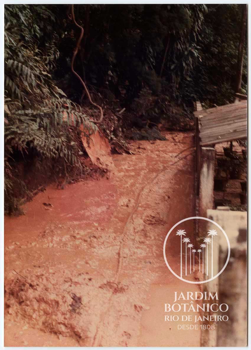 Anotação no envelope de origem: Enchentes no J.Botânico. Danos no parque florestal. Fotógrafo: Mario Silva, Data: 5/3/1985