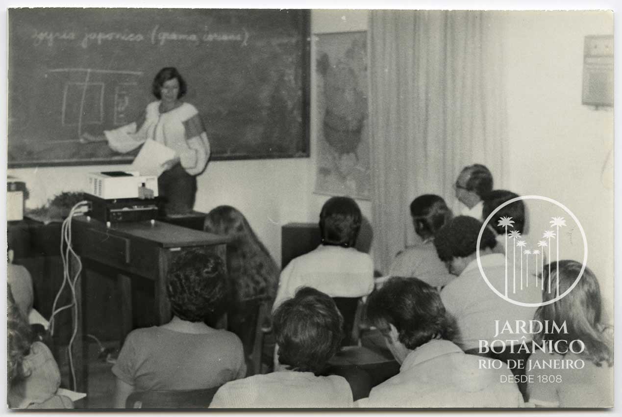 Curso de jardinagem para adultos, ministrado pela professora Esther Daemon, na seção de Botânica Sistemática, gestão de Dr. Ivan Fernandes Barros. Data : 22/07/1981 e 05/02/1982. Fotógrafo: Mario Silva