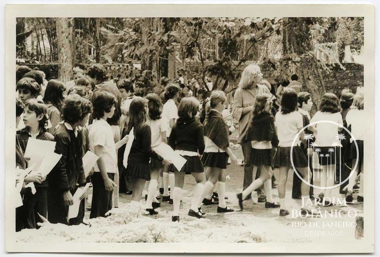 Estudantes no Parque.Festa anual das árvores realizada no Jardim Botânico visita dos alunos da Escola Estadual Shakespeare.Fotógrafo: Mario Silva.Data:23/9/1976.